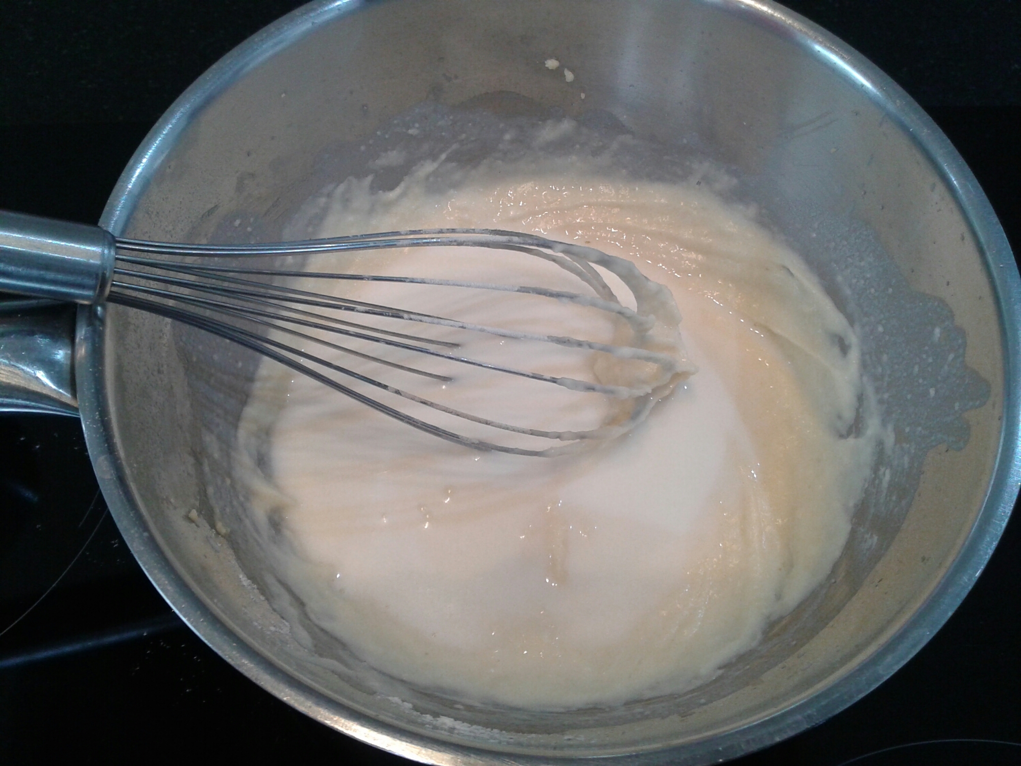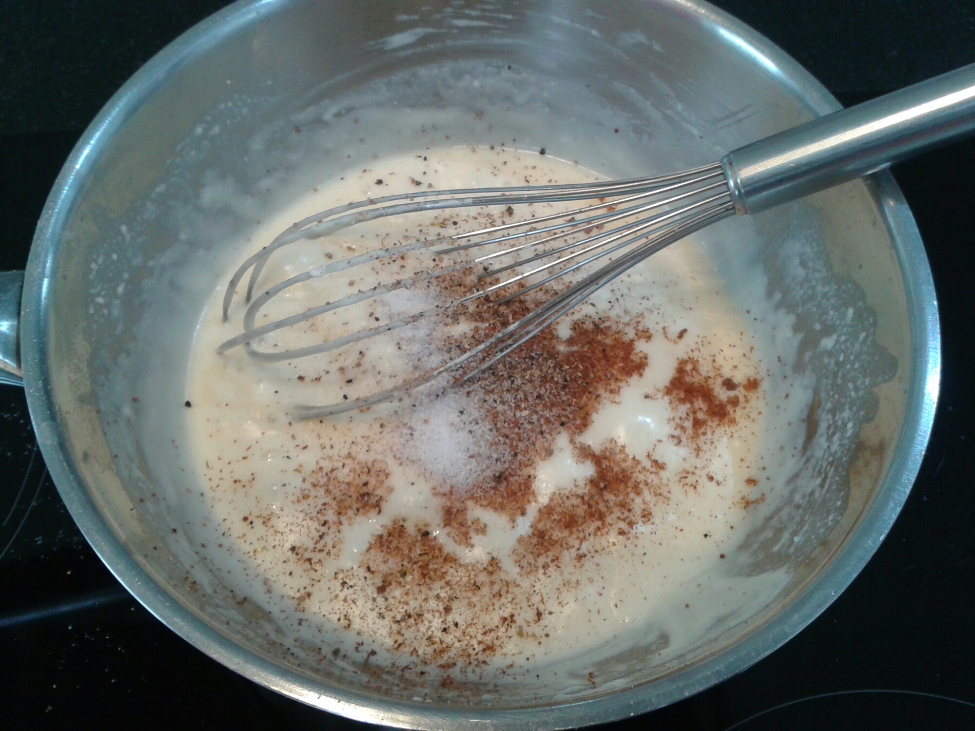 Un 1/2 litre de lait, une pincée de noix de muscade, sel et poivre.