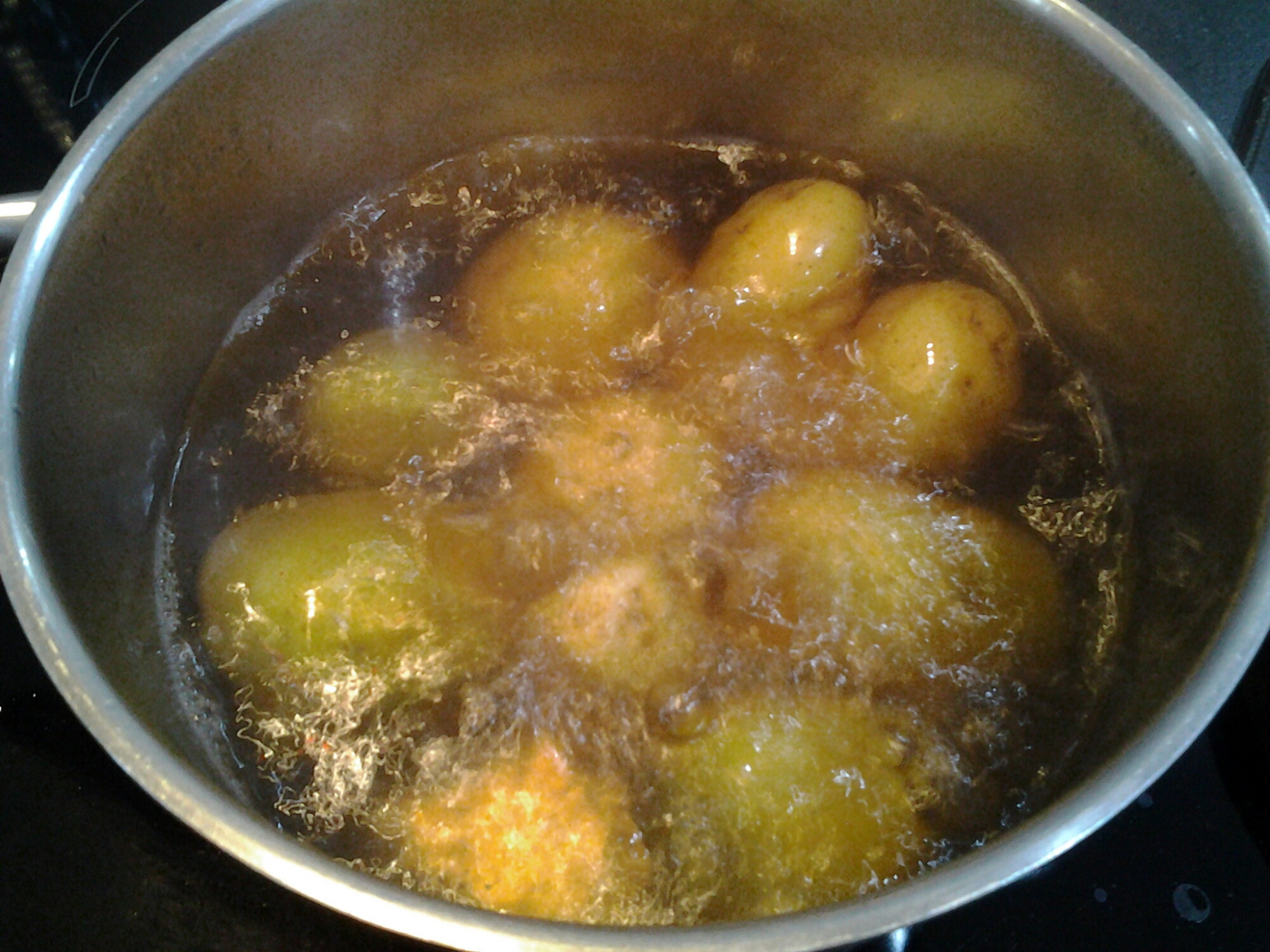 Cuire les pommes de terre en robe des champs, ça évitera que la pomme de terre s’imbibe d’eau. Une fois cuites, éplucher les pommes de terre et écraser les pour obtenir une purée, verser ensuite la crème, le beurre, saler et poivrer selon votre goût.