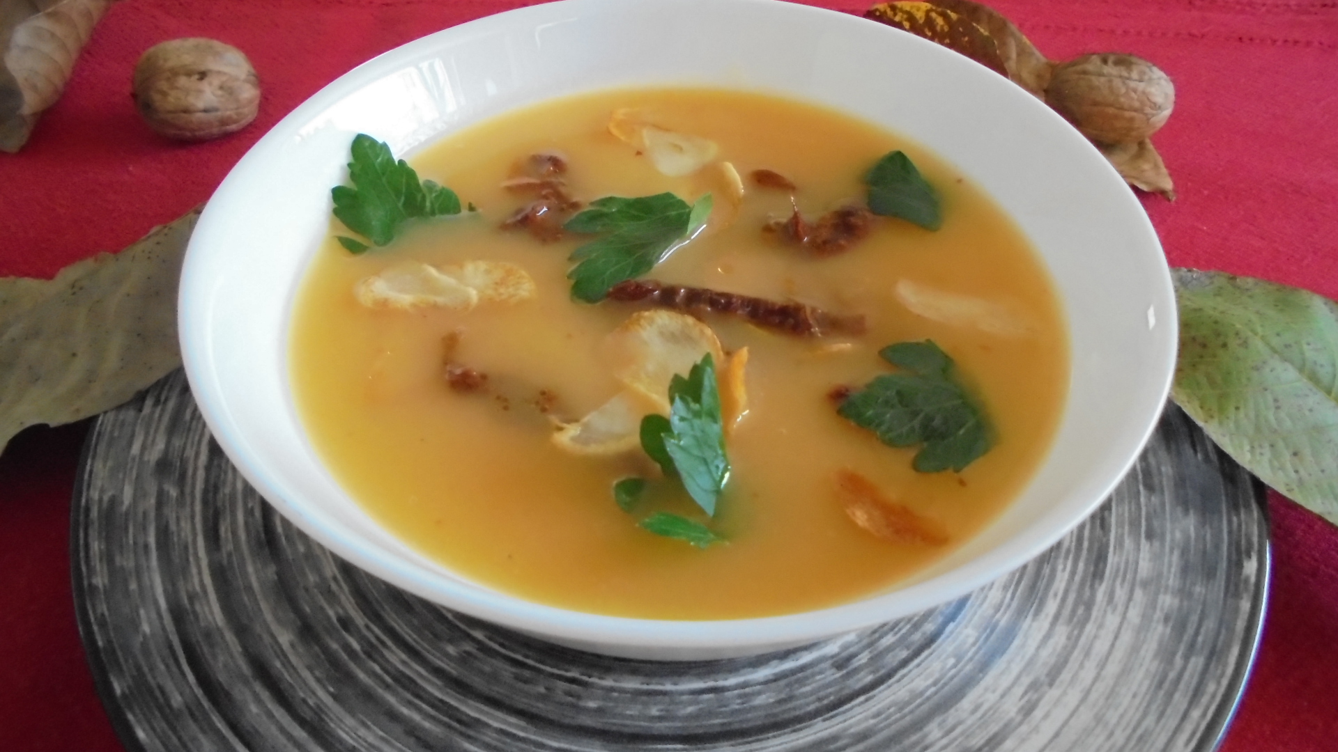 Soupe de butternut aux tomates séchées et à l’ail