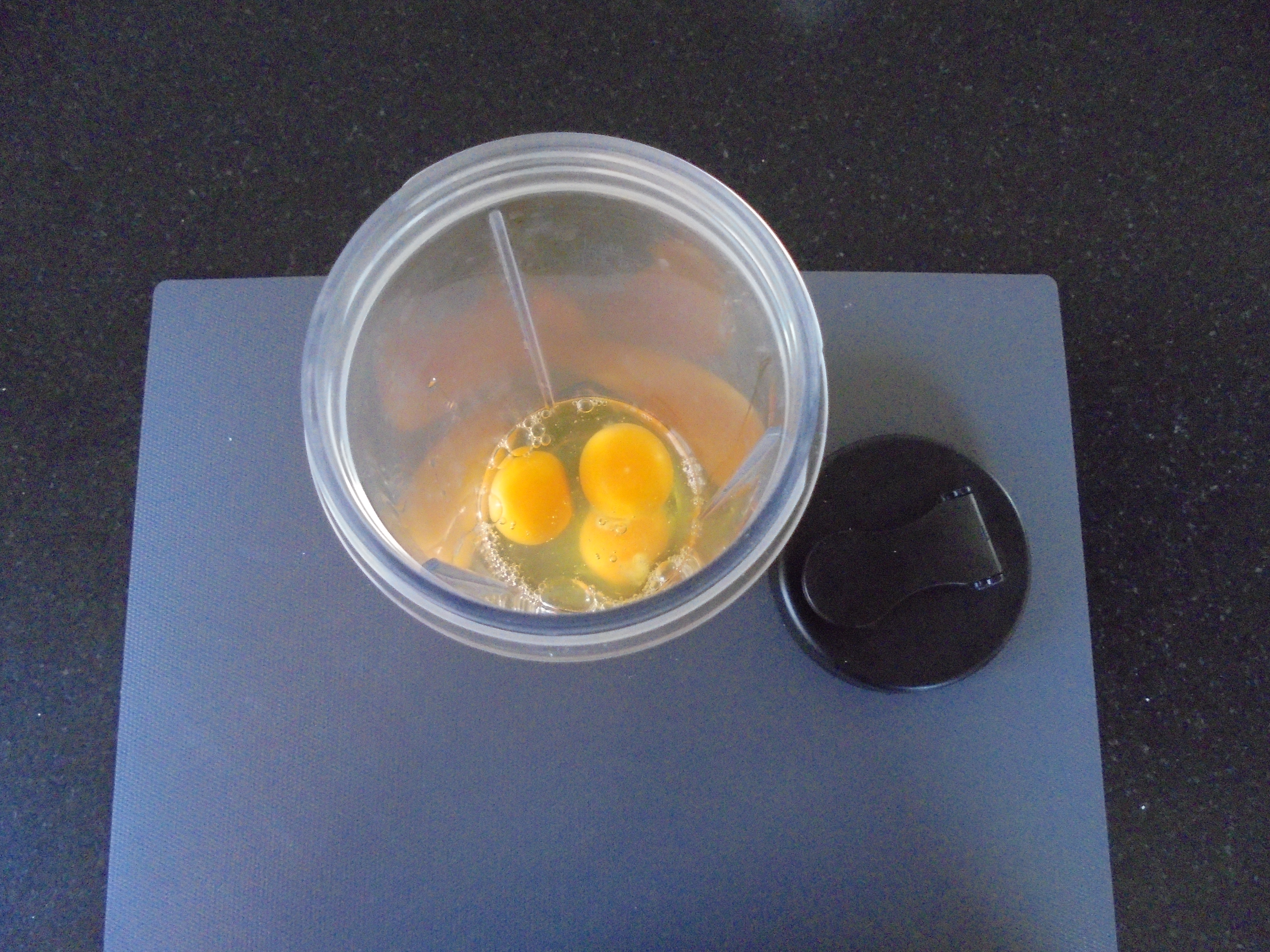 Pendant ce temps là, dans un shaker ou autre ustensile de cuisine, verser la crème, les 3 œufs, le sucre vanillé, les 100 gr de sucre. Mélanger le tout 1 à 2 minutes puis réserver.